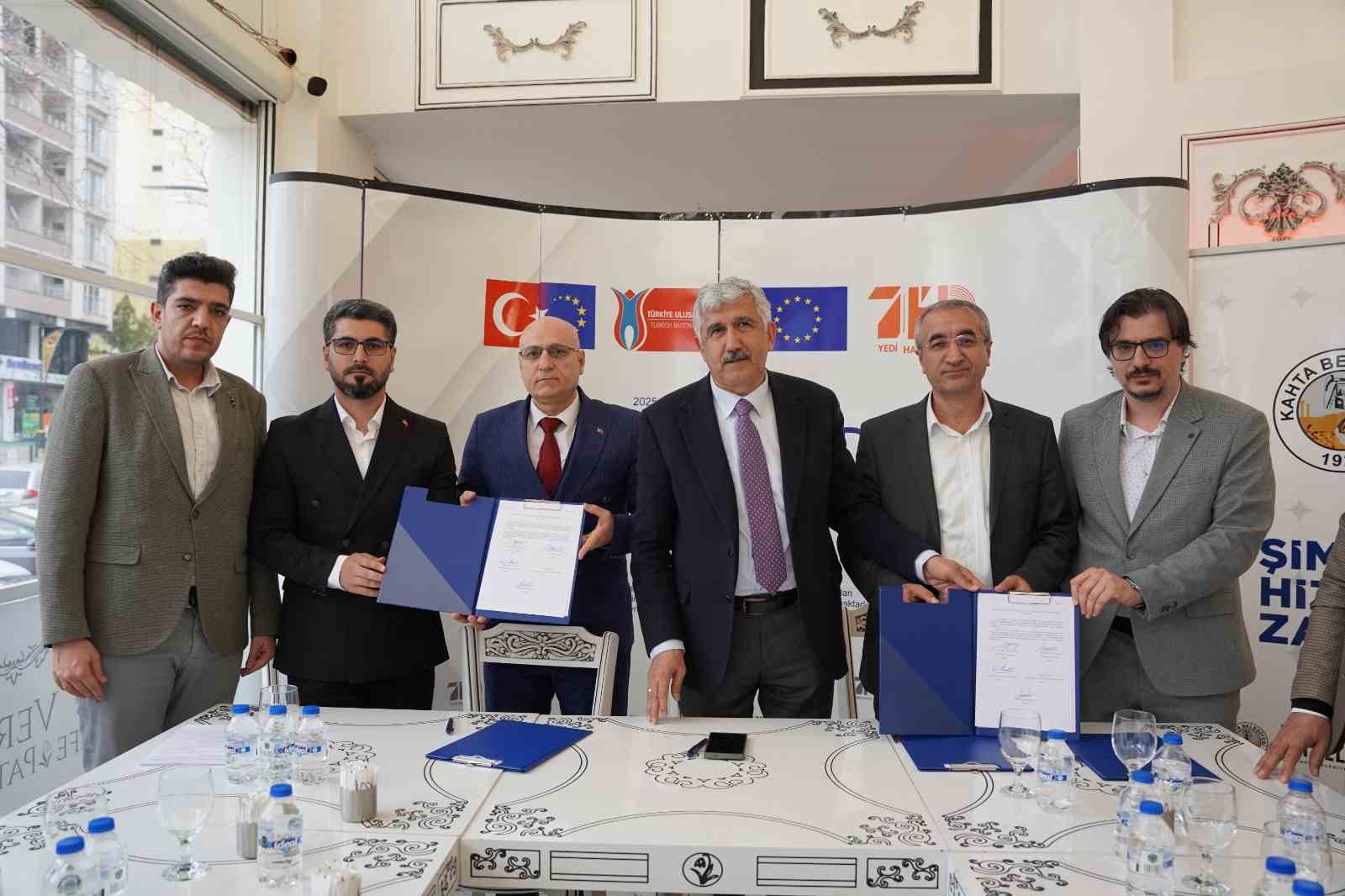 Adıyaman’da, Yedi Halka Derneği tarafından yürütülen ve Türkiye Ulusal Ajansı’nın Erasmus+ programı kapsamında desteklenen "Kadrajımda İklim Değişikliği Var" projesinin tanıtım toplantısı gerçekleştirildi. Programa Kahta Belediye Başkanı Mehmet Can Hallaç, AK Parti ilçe Başkanı Gaffar Çelebi, Adıyaman Gençlik ve Spor İl Müdürü Hüseyin Elüstü, Adıyaman Üniversitesi Dr. Öğr. Üyesi Hasan Akay,Gençler ve basın mensupları katıldı. Programın açılış konuşmasını Yedi Halka Derneği Yönetim Kurulu Başkanı Mustafa Bozan, projenin 18-30 yaş aralığındaki gençler ile yerel STK temsilcilerini kapsadığını belirterek, gençlerin iklim değişikliği konusunda bilinçlenmesini ve sanatsal üretimle farkındalık oluşturmasını hedeflediklerini ifade etti. Proje kapsamında katılımcılara iklim değişikliği ve fotoğrafçılık alanında eğitimler verileceği, ardından gençlerin sahada iklim krizinin etkilerini fotoğraflayarak belgeleyeceği kaydedildi. Elde edilen çalışmaların sergiler ve çeşitli etkinliklerle kamuoyuna sunulacağı belirtildi. Adıyaman Gençlik ve Spor İl Müdürü Hüseyin Elüstü yaptığı konuşmada, , gençlere verdiği desteklerden ötürü Kahta Belediye Başkanı Mehmet Can Hallaç’a ayrıca bu anlamlı projeden dolayı Yedi Halka Derneği Yönetim Kurulu Başkanı Mustafa Bozan dernek yönetimine teşekkür ederek ayrıca teşekkür etti. Kahta Belediye Başkanı Mehmet Can Hallaç ise her zaman gençlerin yanında olduklarını belirterek, "Gençlerimizin hayallerine dokunan, onları geleceğe hazırlayan her projenin destekçisi olmaya devam edeceğiz. Bu anlamlı çalışmada emeği geçen dernek başkanı Mustafa Bozan ayrıca gençlere verdiği desteklerden dolayı İlçe Kaymakamımız Muhammed Üsame Soysal, Adıyaman Gençlik ve Spor İl Müdürümüz Hüseyin Elüstü’ye ve İlçe Gençlik ve Spor Müdürümüz Mustafa Çiçek’e teşekkür ediyorum. Gençlerimiz bizim en büyük gücümüzdür; onların enerjisi ve üretkenliğiyle ilçemizi daha güçlü bir geleceğe taşıyacağız." ifadelerini kullandı. Projenin final aşamasında ise Adıyaman’dan Ankara’ya uzanan bir politika diyaloğu başlatılacağı, düzenlenecek çalıştay sonucunda hazırlanacak raporun gençler tarafından karar alıcılara sunulacağı ifade edildi. Projenin hem iklim değişikliği konusunda toplumsal farkındalık oluşturmayı hem de gençlerin karar alma süreçlerine aktif katılımını sağlamayı hedeflediğini belirterek, tüm gençleri ve paydaşları projeye destek vermeye davet etti.