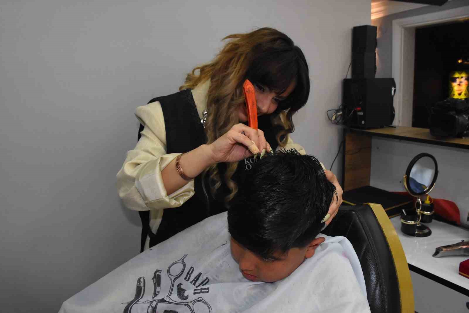 Afyonkarahisar’da erkek berberi kadın, üç yıldır müşterilerine hizmet veriyor