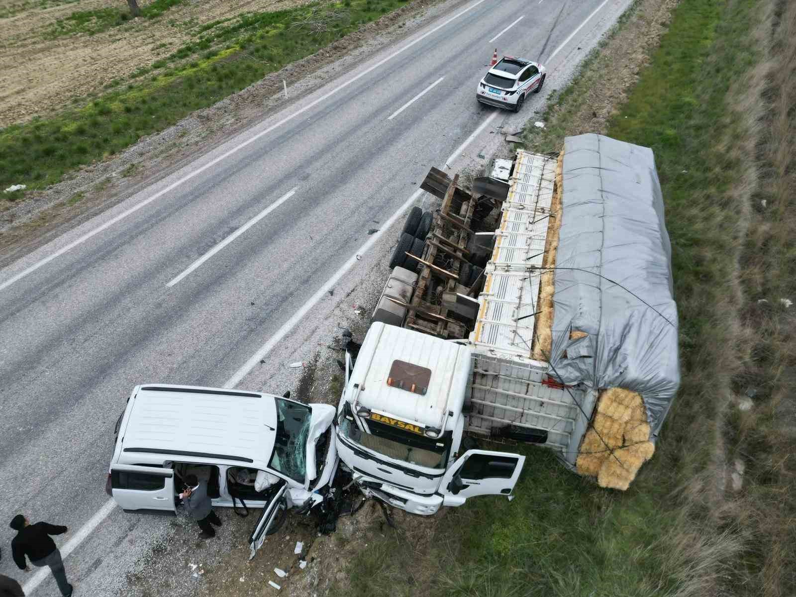Afyonkarahisar’da kamyon, tanker ve hafif ticari aracın karıştığı kazada 2 kişi yaralanırken, kazada tankerin boş olması ise yaşanabilecek facianın önüne geçti. Kaza, Çay ilçesi çıkışında meydana geldi. Edinilen bilgilere göre, F.B., yönetimindeki 09 LJ 858 plakalı saman yüklü kamyon henüz belirlenemeyen bir sebepten ötürü A.S.’nin kullandığı 43 AGF 520 plakalı tanker ile çarpıştı. Bu sırada arkadan gelen 09 APD 412 plakalı kamyonette kaza yapan araçlara çarptı. Kazada kamyonun dorsesi yerinden çıkarak üzerindeki samanlar ile birlikte tarım arazisine devrildi. Olayda M.A.Y. ve C.Y., isimli şahıslar yaralandı. Yaralılar kaza sonrası ihbar üzerine olay yerine gelen ambulanslarla hastanelere kaldırıldı. Kaza esnasında tankerin boş olması ve akaryakıt taşımaması için yaşanabilecek bir facianın önüne geçti. Kazanın ardından jandarma tarafından inceleme başlatıldı.