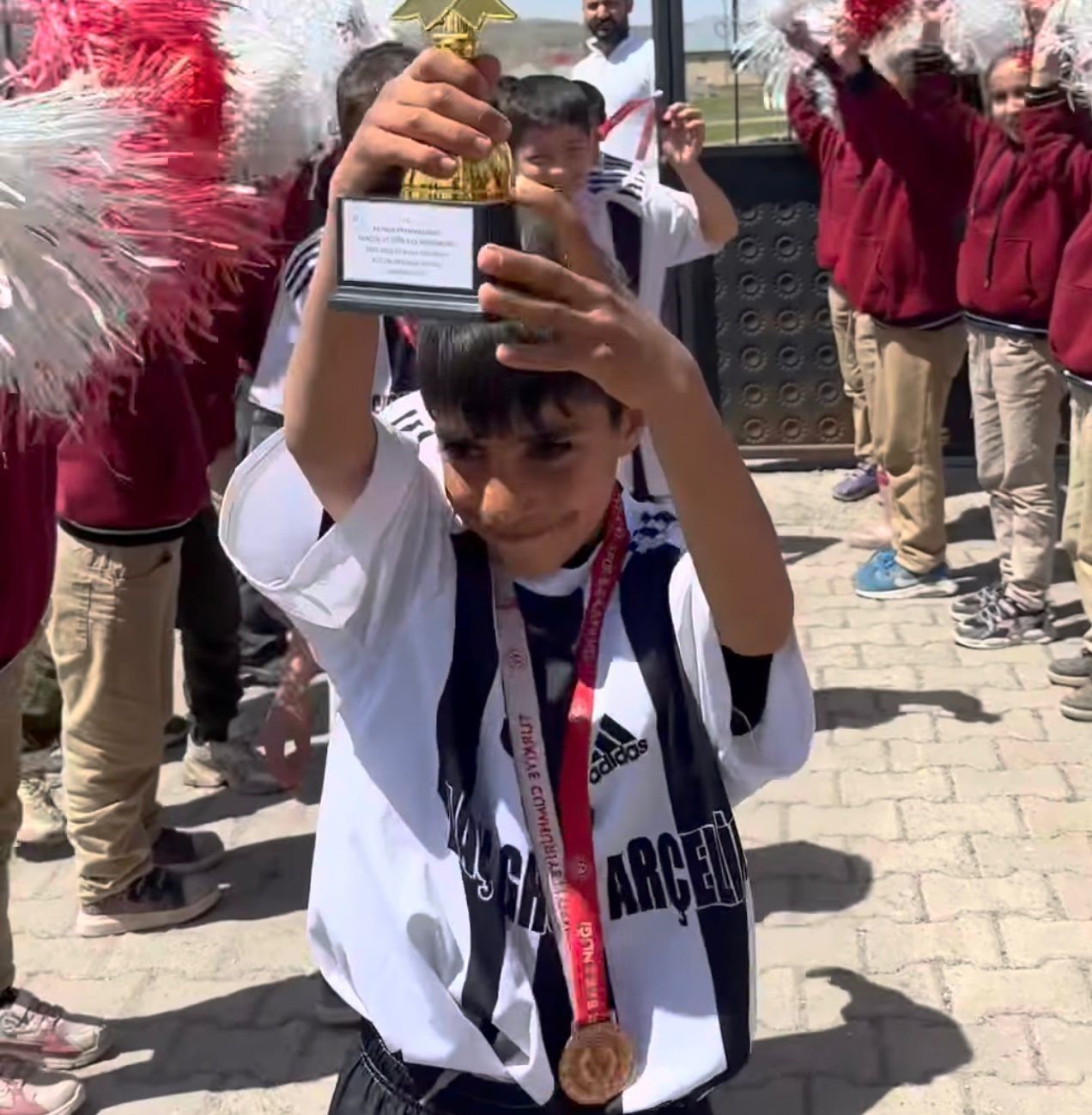 Ağrı’nın Patnos ilçesinde, İlçe Milli Eğitim Müdürlüğü’nce düzenlenen ilkokullar arası futbol turnuvasında üçüncülük elde eden Yürek Veren İlkokulu öğrencileri, okullarına dönüşlerinde unutulmaz bir karşılama ile onurlandırıldı. Turnuva boyunca sergiledikleri azim, takım ruhu ve mücadeleci oyunlarıyla dikkat çeken minik sporcular, elde ettikleri başarıyla hem öğretmenlerinin hem de ailelerinin gururu oldu. Zorlu maçların ardından üçüncülük kupasını kazanan öğrenciler, okul bahçesine geldiklerinde arkadaşlarının yoğun ilgisiyle karşılaştı. Okul girişinde toplanan öğrenciler, ellerinde alkışlarla ve sevinç tezahüratlarıyla arkadaşlarını karşıladı. Renkli görüntülere sahne olan karşılama sırasında duygusal anlar yaşanırken, sporun birleştirici gücü bir kez daha gözler önüne serildi. Okul yönetimi ve öğretmenler de bu anlamlı başarıdan dolayı öğrencileri tebrik ederek, bu tür etkinliklerin çocukların sosyal gelişimine büyük katkı sağladığını vurguladı. Yapılan açıklamalarda, öğrencilerin sadece akademik değil, sportif alanlarda da desteklenmesinin önemine dikkat çekildi. Yürek Veren İlkokulu öğrencilerinin elde ettiği bu başarı, okulda büyük bir motivasyon kaynağı olurken, diğer öğrencilere de ilham verdi. Minik sporcuların mutluluğu yüzlerinden okunurken, gelecekte daha büyük başarılara imza atacaklarının sinyallerini verdiler.
