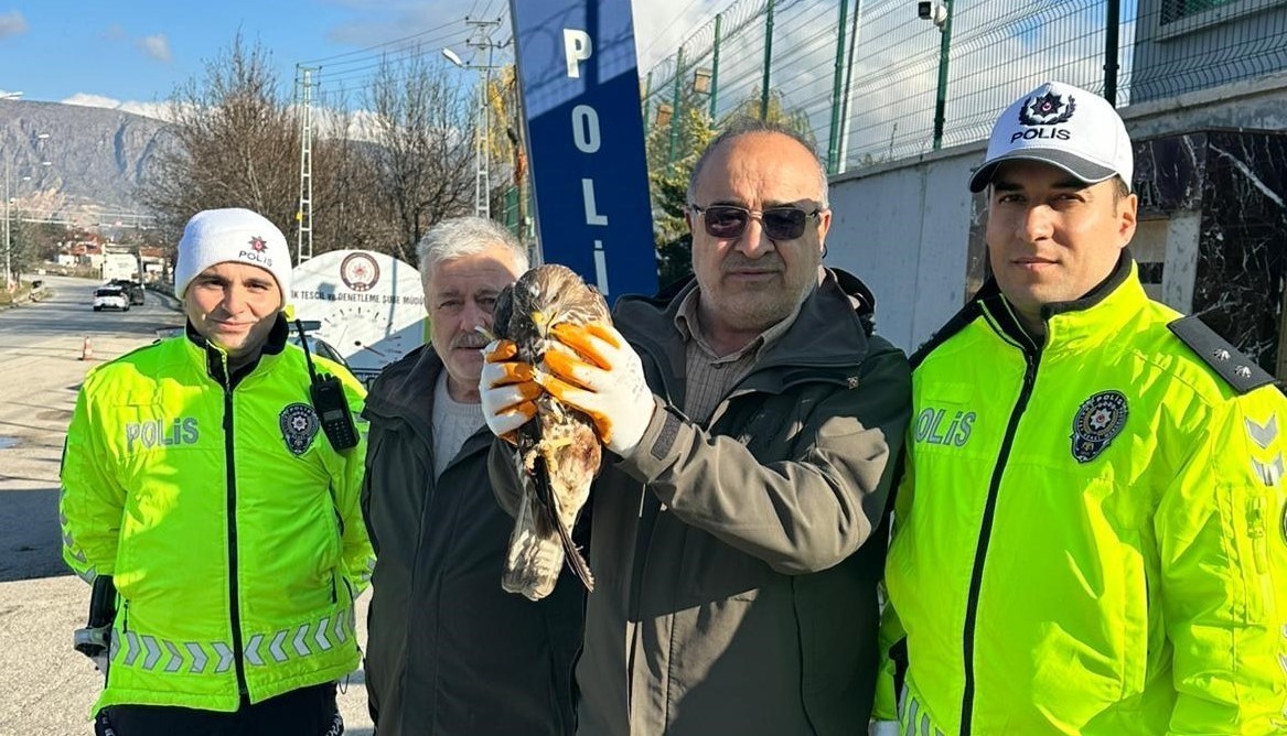 Amasya’da trafik denetimi yapan polis ekipleri yol kenarında yaralı bir kızıl şahin buldu. Kuş, Doğa Koruma ve Milli Parklar Şubesi görevlilerine teslim edildi. Amasya - Tokat karayolunda trafik denetimi yapan Amasya Emniyet Müdürlüğü Bölge Trafik Denetleme Şubesi ekipleri, yol kenarında yaralı halde bulunan kuşu fark etti. Ekipler tarafından koruma altına alınan kızıl şahin, tedavisi yapılmak üzere Amasya Doğa Koruma ve Milli Parklar Şubesi görevlileri teslim edildi. Veteriner hekim tarafından muayene edilen şahinin, iyileştikten sonra yeniden doğaya salınacağı belirtildi.