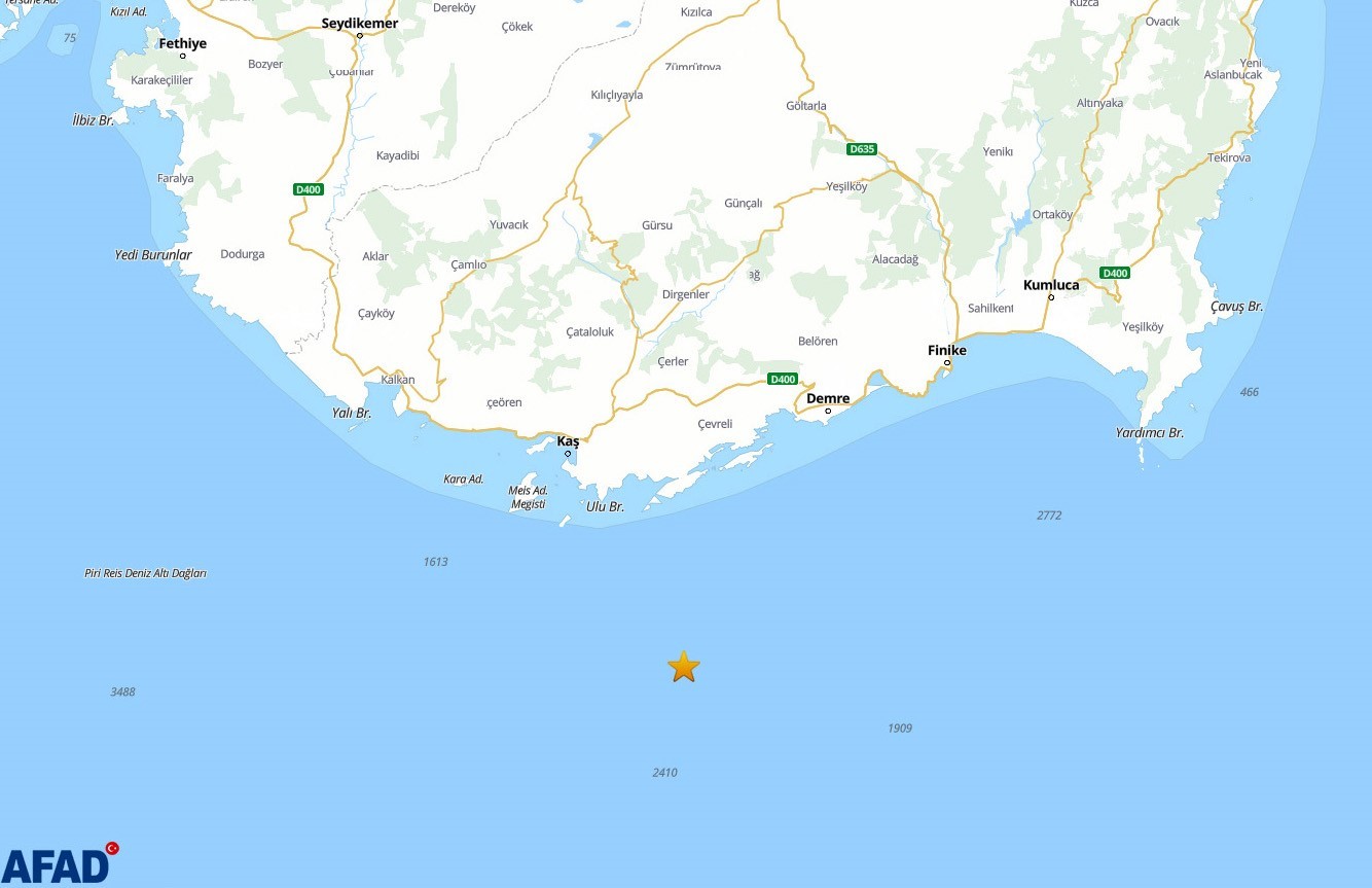 Kaş açıklarında 3.8 büyüklüğünde deprem meydana geldi