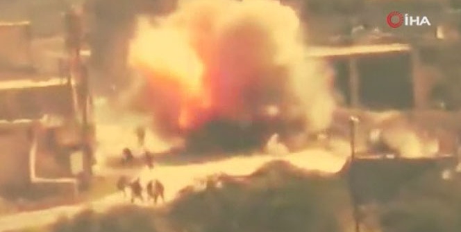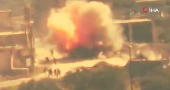 TSK destekli Suriye Milli Ordusu (SMO), Esad rejimine karşı başlatılan Bahar Kalkanı harekatı kapsamında İdlib'in güney kırsalındaki Kafr Nabl köyünde rejime ait bir tankı tanksavar füzesiyle imha etti.