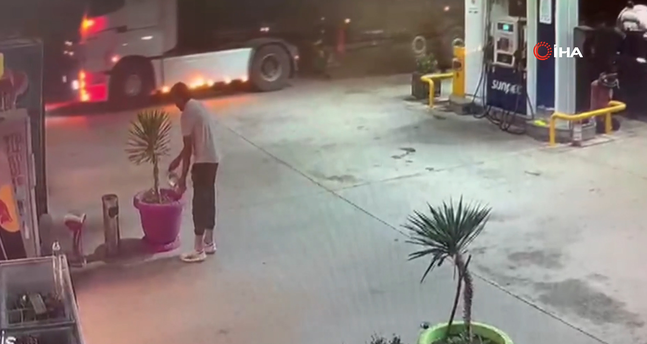 2025-07-28 11:46:54 Fetö’cü kundakçı parkı tutuşturduğu benzinleri böyle almış Bursa'nın Harmancık ilçesindeki Kışmanlar köyündeki yangını çıkardığı iddiasıyla gözaltına FETÖ üyeliği sebebiyle Hava Kuvvetlerinden ihraç edilen 30 yaşındaki Ufuk Aytekin'in ilçedeki bir benzin istasyonundan 5 kiloluk pek şişelerle benzin alırken görüntüleri ortaya çıktı. 03 HK 184 plakalı kamyonet ile istasyona gelen şüphelinin aldığı 5 litrelik pet şişelerdeki suları önce çiçek saksısına döktüğü ardından da pompaya geçip benzin aldığı görüldü. Şüpheli şahsın sık sık telefon ile görüşmesi dikkat çekti.