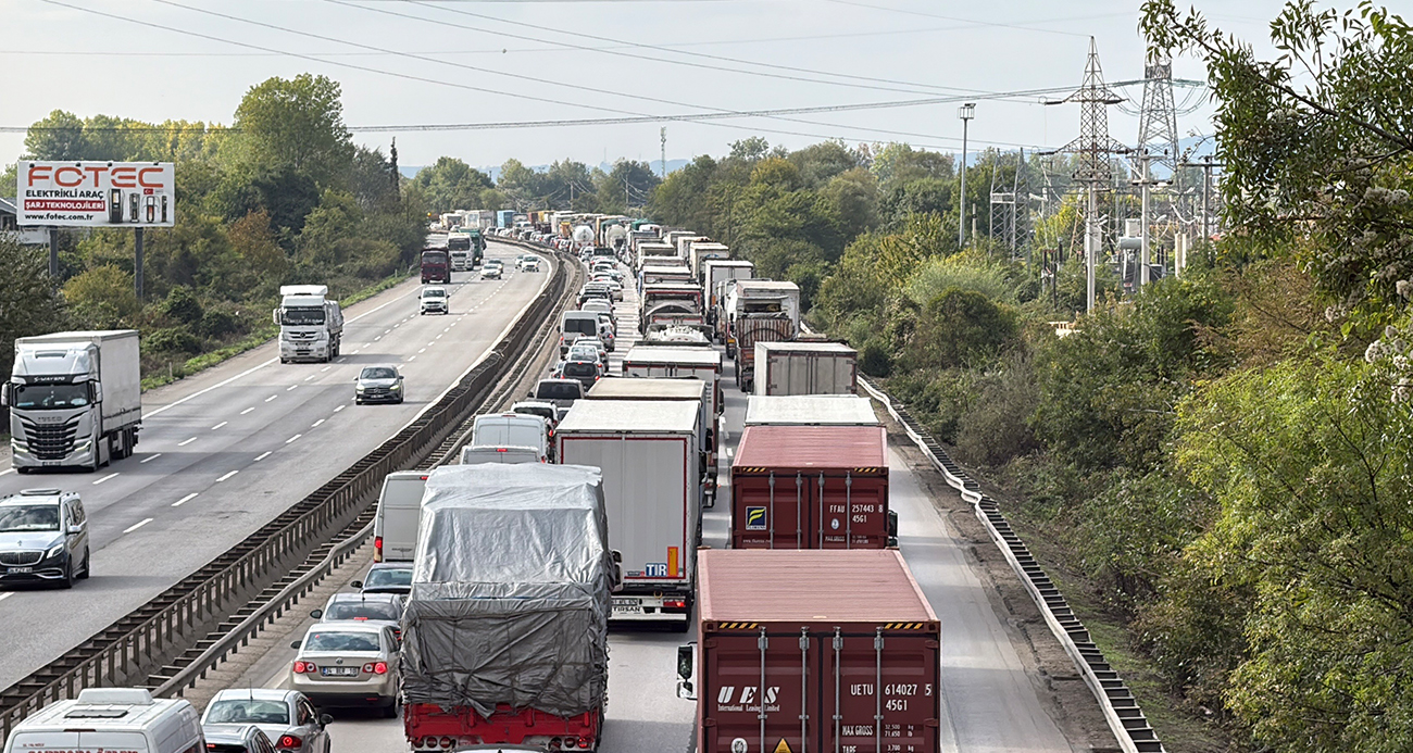 Anadolu Otoyolu Sakarya geçişinde kontrolden çıkan kamyonet yan yattı. Otoyolun İstanbul istikametinde uzun araç kuyrukları oluşurken, olay yeri havadan görüntülendi.