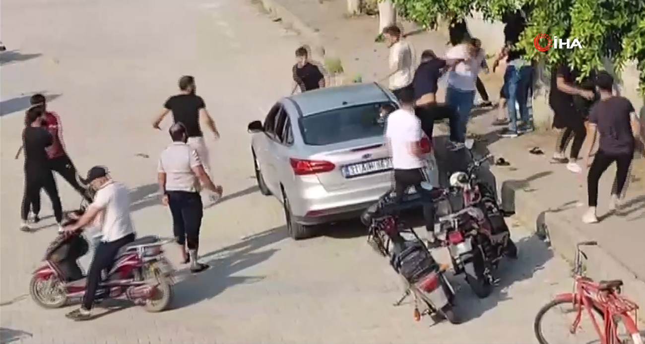 Hatay'da iki grup arasında sokak ortasında çıkan kavgada yumruklar ve tekmeler havada uçuştu. Adeta savaş ortamına dönen kavga anbean kameraya yansıdı.