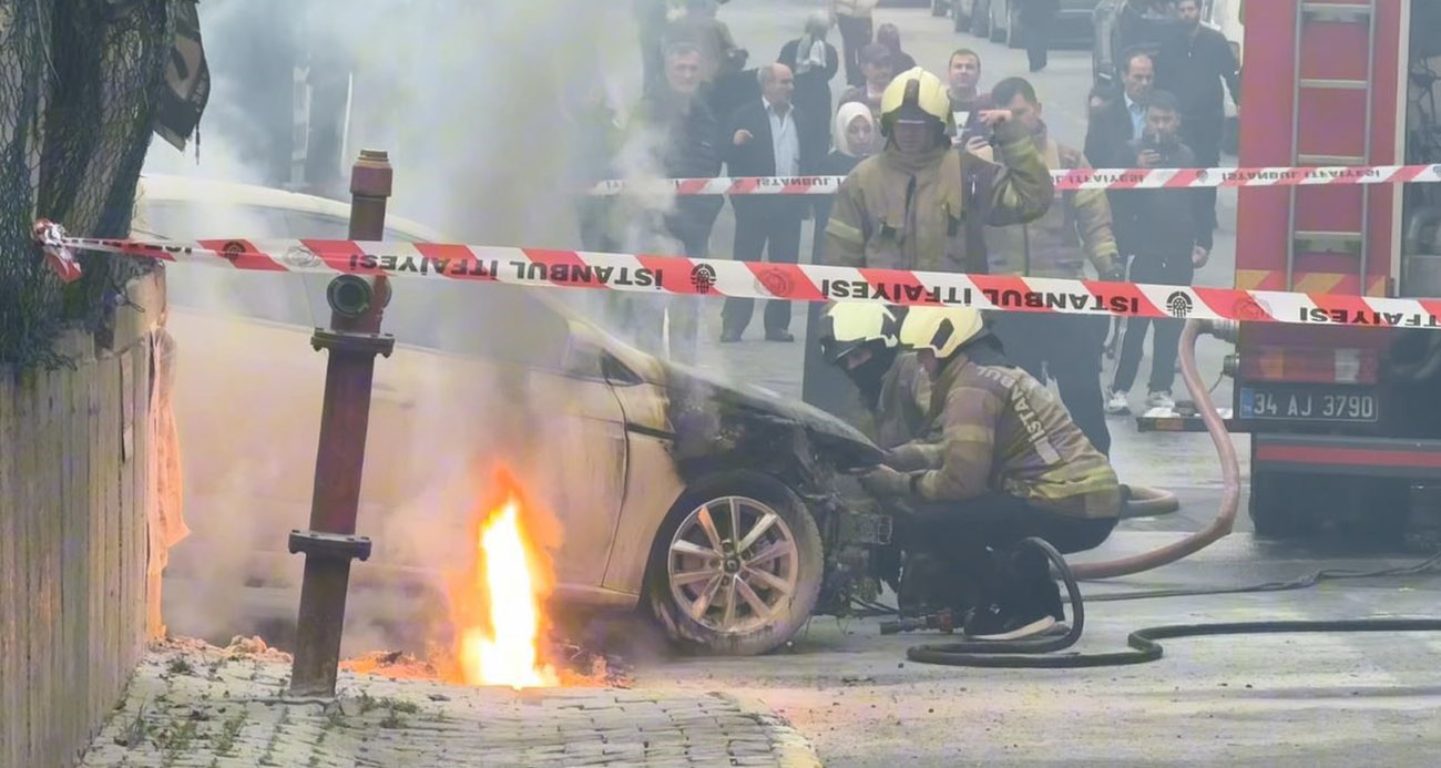 İstanbul'un Küçükçemece ilçesinde BEDAŞ'a ait yer altı elektrik kabloları bir anda patlayıp yanmaya başladı. Alevler park halindeki otomobile de sıçrarken yaşanan korku dolu anlar kameraya yansıdı.