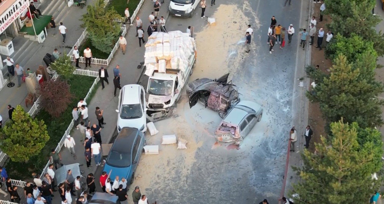 Bitlis’teki 9 araçlı zincirleme kaza havadan görüntülendi: Ortalık savaş alanına döndü