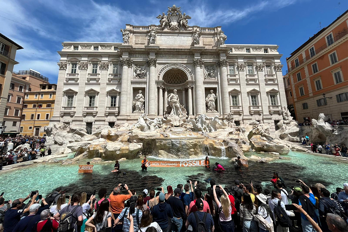 2023-05-22 11:42:13 İtalya’daki Aşk Çeşmesi’ne boyalı saldırı İtalya’nın Roma şehrinde bulunan Aşk Çeşmesi’ne aktivistlerin seyreltilmiş kömür dökmesi sonucu tarihi çeşme siyaha boyandı.