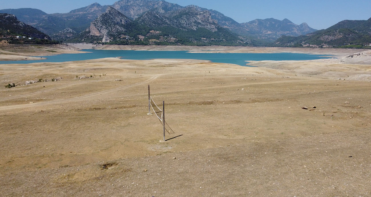 Barajda su seviyesi yüzde 10’a düştü: Çoraklaşan bölgeye voleybol direği diktiler