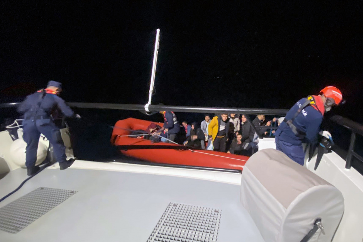 Muğla’nın Datça İlçesi açıklarında içinde Yunanistan sahil güvenlik unsurları tarafından Türk karasularına geri itilen 59 düzensiz göçmen kurtarıldı.