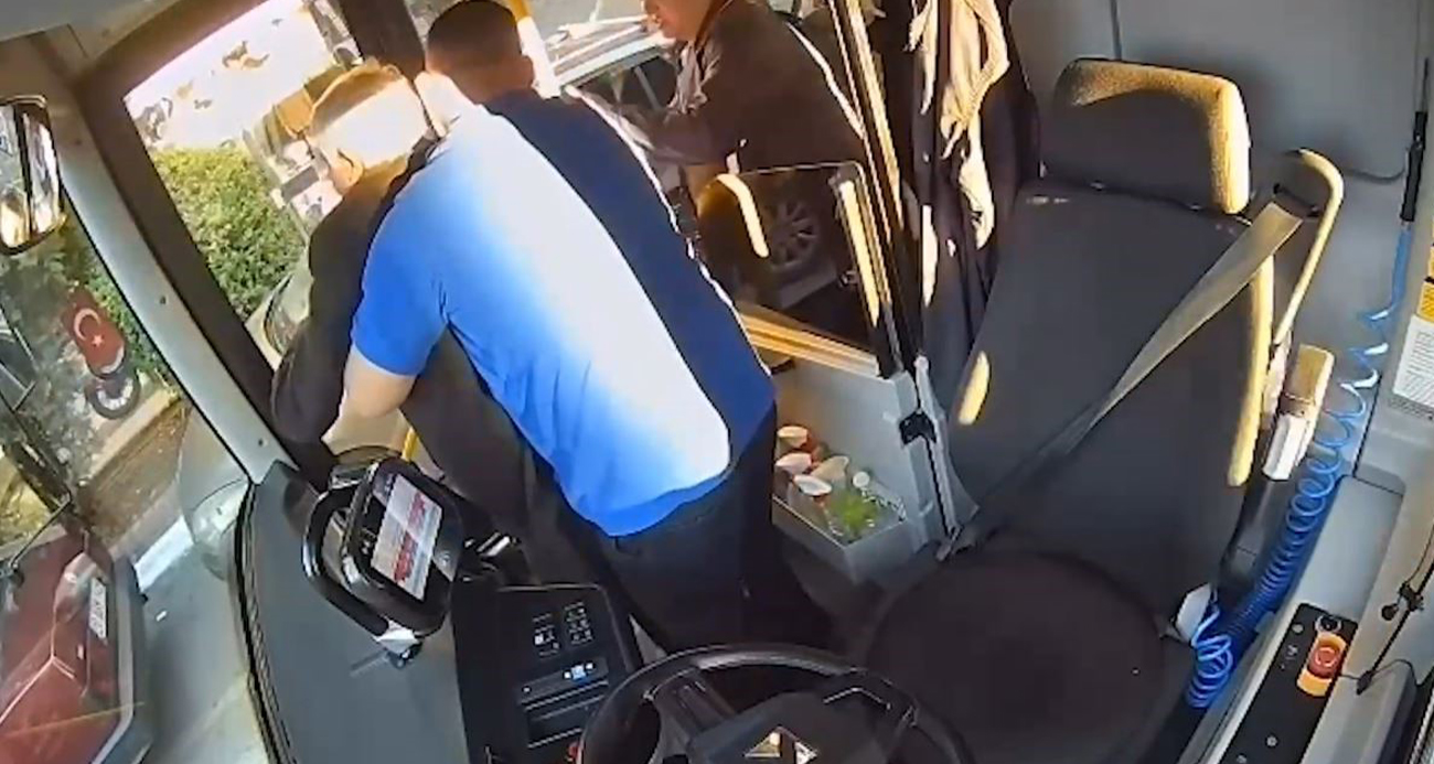 2025-10-13 18:03:00 Otobüs şoförü, nefesi kesilen emekli öğretmeni kurtardı Aydın Büyükşehir Belediyesi'ne ait halk otobüsünde fenalaşan bir yolcuya otobüs şoförü müdahale etti. Araç içi güvenlik kamerasına yansıyan görüntülerde otobüs şoförü, yolcuya Heimlich manevrası uygulayarak kurtardı. Nefesi açılan emekli öğretmen Ali Ballıoğlu, şoföre teşekkür ederek yoluna devam etti. Şoförün soğukkanlı bir şekilde ustaca yolcuyu kurtarması takdir topladı.