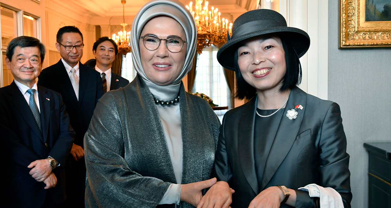 2025-09-17 20:22:46 Emine Erdoğan, Japonya Altes Prensesi Mikasa ile görüştü Cumhurbaşkanı Recep Tayyip Erdoğan'ın eşi Emine Erdoğan, Japonya Altes Prensesi Akiko Mikasa ile bir araya geldi.