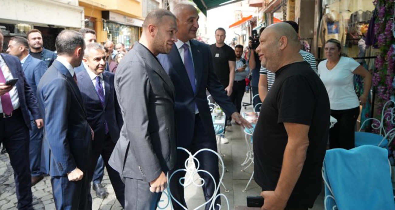 2025-09-25 16:23:34 Kültür ve Turizm Bakanı Ersoy, İstiklal Caddesi esnafını ziyaret etti Kültür ve Turizm Bakanı Mehmet Nuri Ersoy, Türkiye Yüzyılı Buluşmaları kapsamında İstanbul Beyoğlu’nda esnaf ve mahalle muhtarları ile bir araya geldi. İstiklal Caddesi'nde vatandaşlarla sohbet eden Ersoy, yabancı turistleri Kültür Yolu Festivali’ne davet etti.