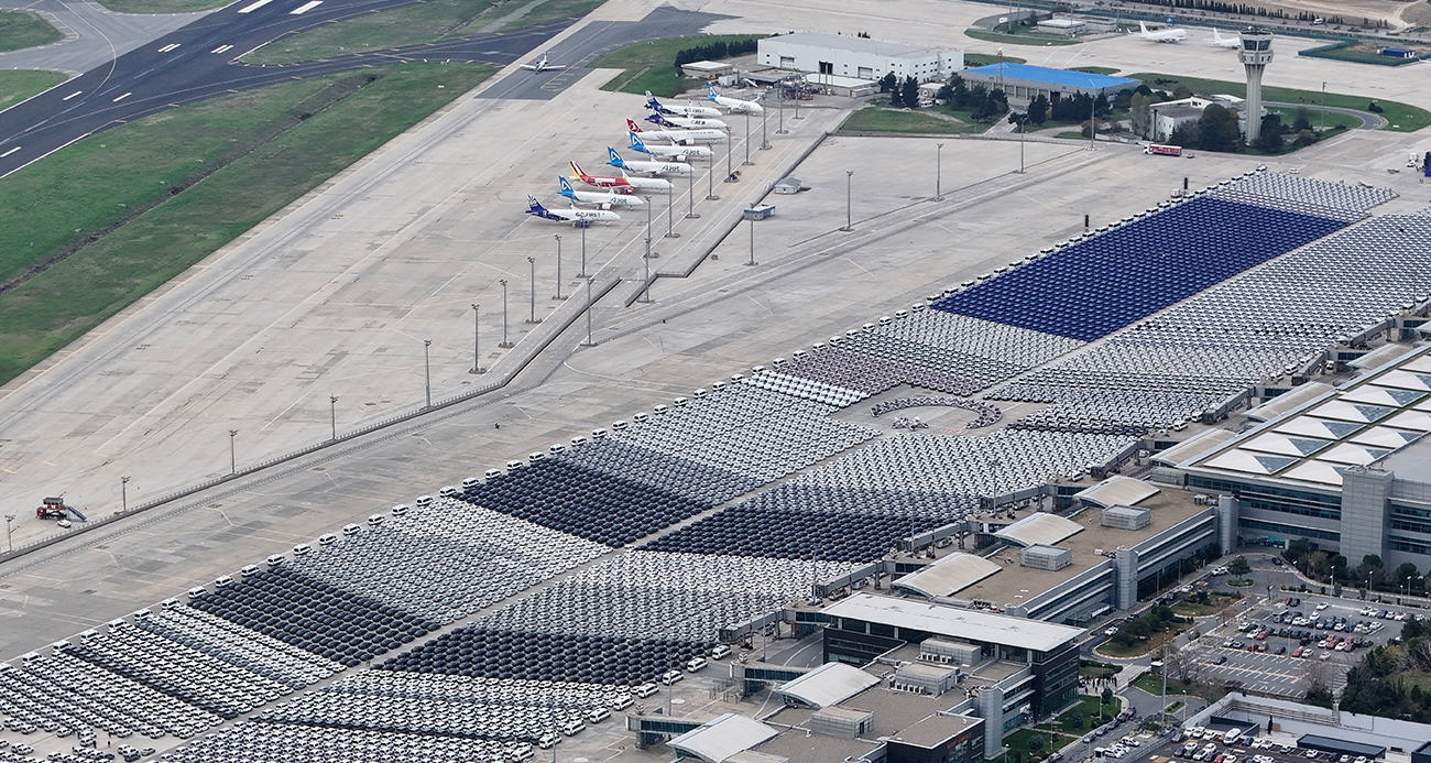 Atatürk Havalimanı’nda teslime hazır binlerce araç tek karede görüntülendi
