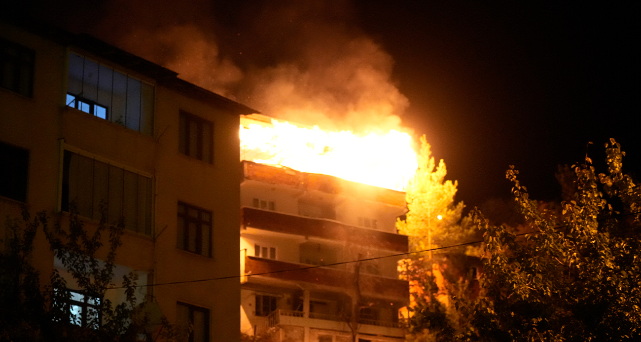 Gümüşhane’de 4 katlı binada çıkan yangın paniğe neden oldu