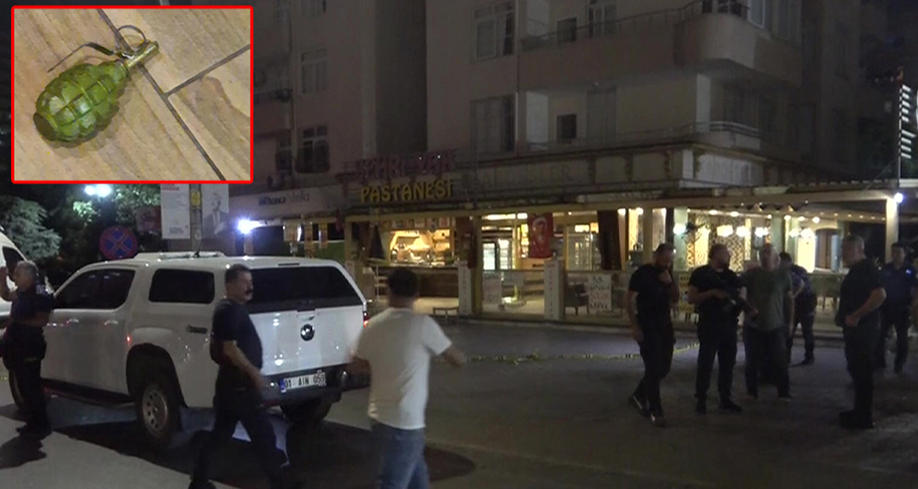 Adana’da bir pastaneye pimi çekilmemiş el bombası atılması büyük paniğe neden oldu.