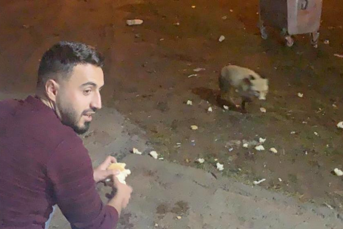 Karslı gençler adını ‘Şükrü’ koydukları tilkiyi elleriyle besliyor.