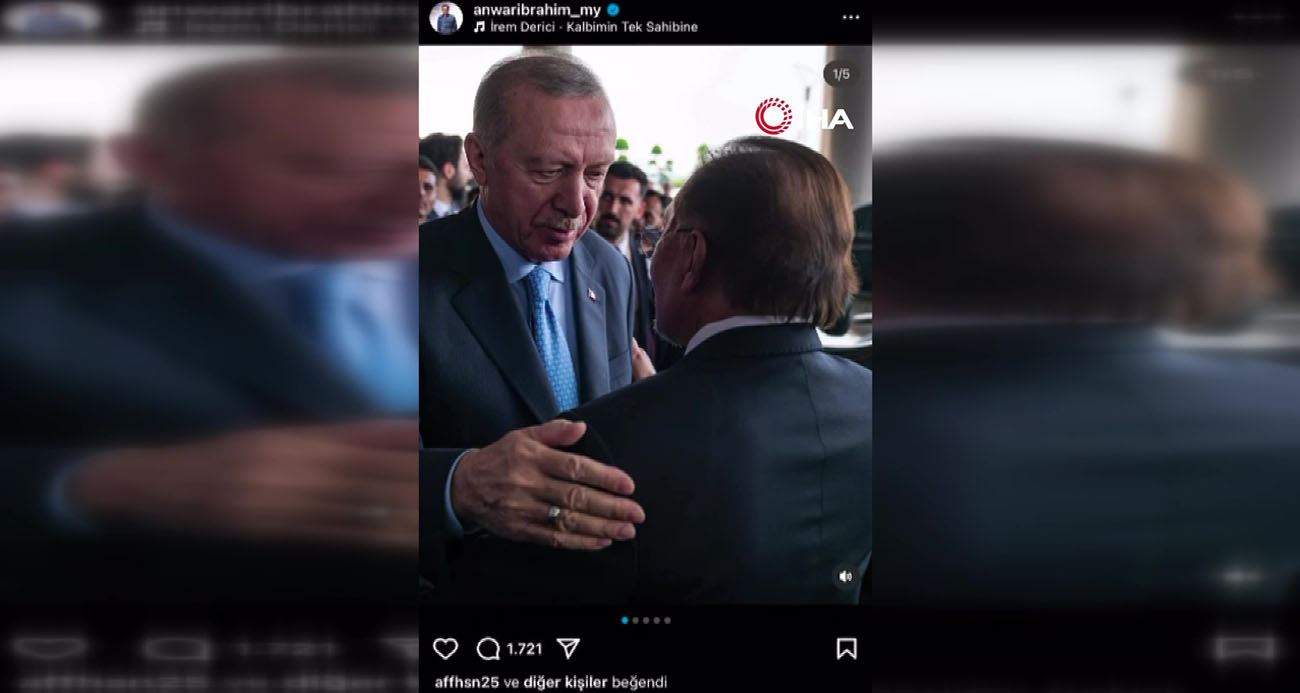 Malezya Başbakanı Enver İbrahim, Cumhurbaşkanı Recep Tayyip Erdoğan ile olan fotoğraflarını İrem Derici'nin "Kalbimin tek sahibi" adlı şarkısıyla sosyal medya hesabında paylaştı.