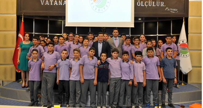 Kepez Belediye Başkanı Hakan Tütüncü, fikirlerini dinlemek ve belediyenin işleyişini yerinde görmeleri amacıyla ilköğretim öğrencilerini belediyede ağırlıyor.