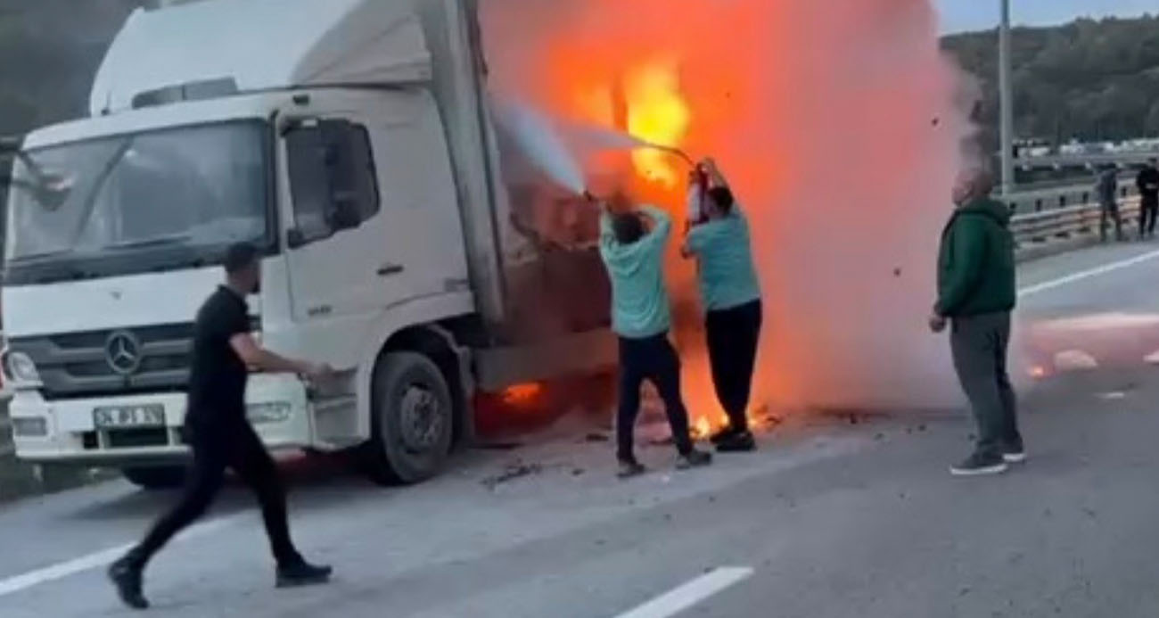 2025-11-11 18:40:19 Kuzey Marmara Otoyolu’nda kamyon alev alev yandı Kuzey Marmara Otoyolu’nun Beykoz Edirne istikametinde seyir halindeki bir kamyonun kasasında yangın çıktı. Kısa sürede alev topuna dönen kamyon kullanılamaz hale geldi.