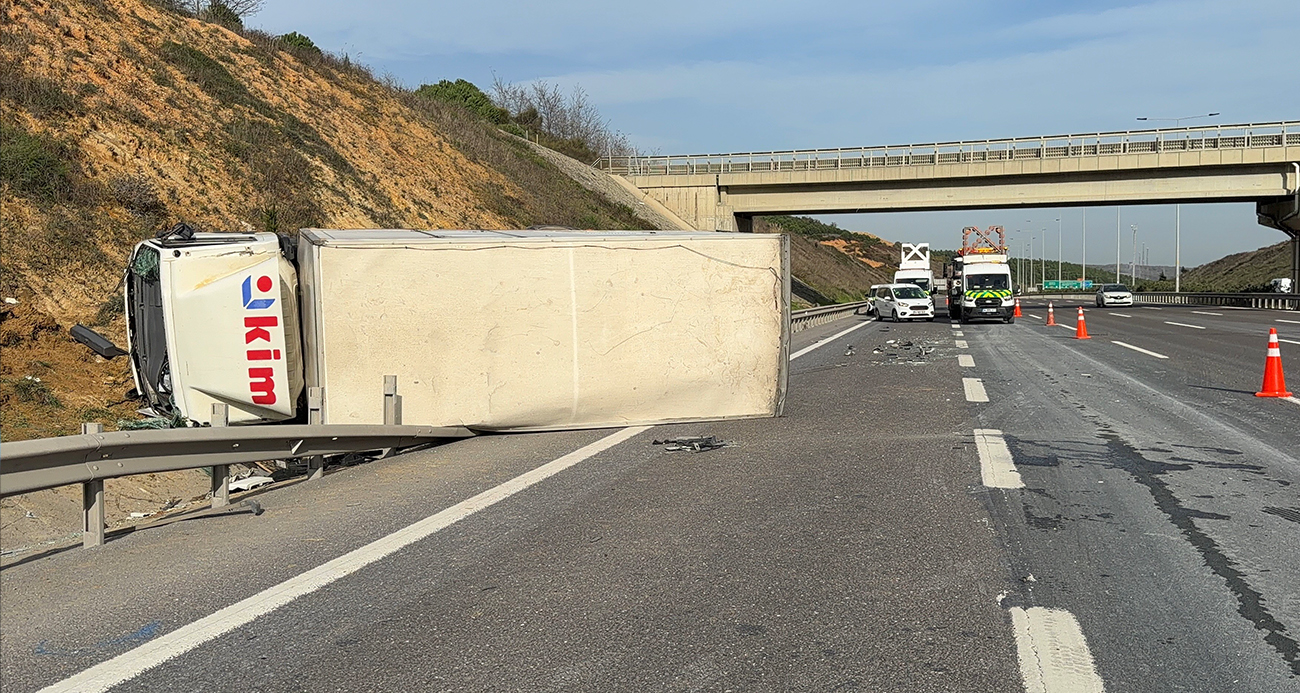 2025-11-17 13:22:12 Kuzey Marmara Otoyolu’nda zincirleme kaza: Aynı firmaya ait iki kamyon kazaya karıştı Eyüpsultan Kuzey Marmara Otoyolu üzerinde iki kamyon ve bir tırın karıştığı zincirleme trafik kazası meydana geldi. Aynı firmaya ait iki kamyonun çarpıştığı kazada, kamyon sürücüsü araçta sıkışarak yaralandı. Olay yerine sevk edilen itfaiye ekipleri sürücüyü kurtararak sağlık ekiplerine teslim etti.