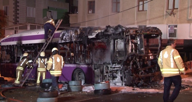 Kavacıkta Özel Halk Otobüsü alev alev yandı