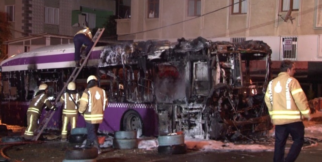 Kavacık'ta park halinde olan özel halk otobüsü birden alev alev yanmaya başladı. Alevlere teslim olan otobüs itfaiye ekipleri tarafından söndürülürken otobüs kullanılamaz hale geldi.