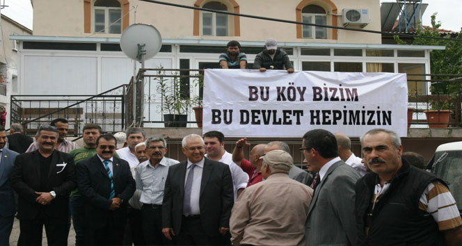 Altın madeninin çevreye zarar verdiği iddiasıyla bir araya gelen köylüler, köy meydanında maden yetkililerine seslerini duyurabilmek için basın toplantısı düzenledi.