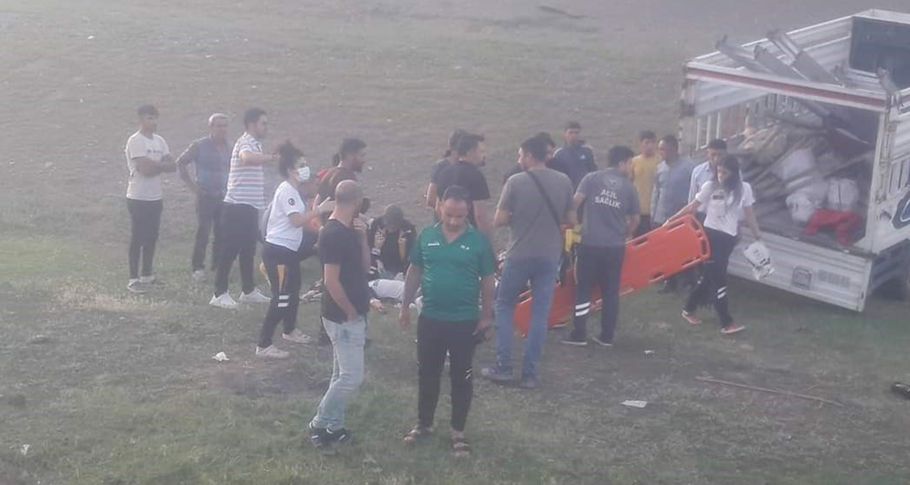 Iğdır'ın Tuzluca ilçesinde kayısı işçilerini taşıyan kamyonet ile otomobilin çarpıştığı kazada 12 kişi yaralandı.