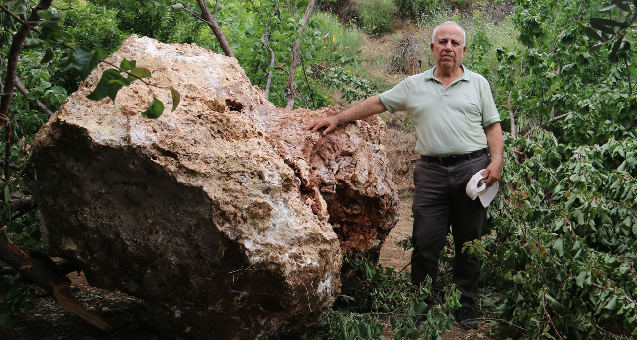 Hatay’da taş ocağından bahçesine 10 tonluk devasa kaya düşen Selahattin Altınöz, ailesinin kayısı topladığı esnada gerçekleşen olaya tepki göstererek çalışmaların duyarlı bir şekilde gerçekleştirilmesini talep etti.