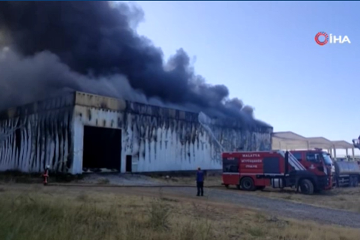 Malatya'da kayısı depolama fabrikasında yangın çıktı. Yangını söndürme çalışmaları sürüyor.