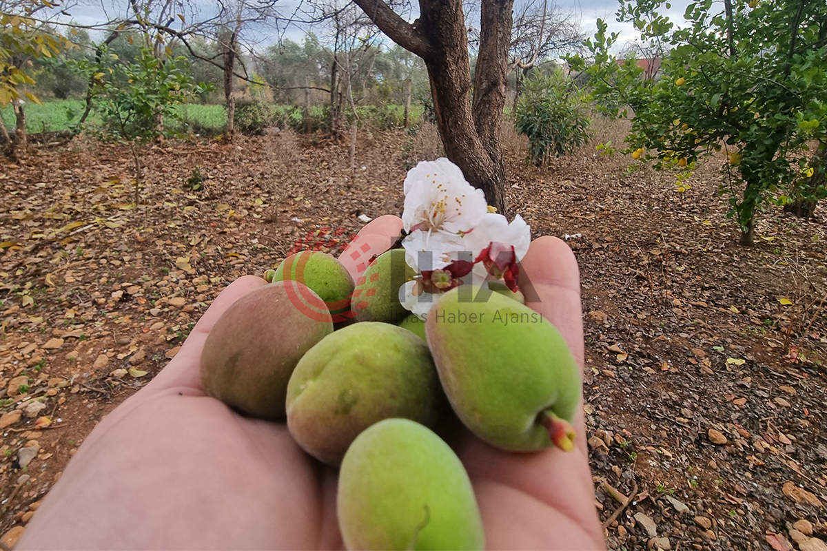 Kayısı ağacı kış ortasında çiçek açıp meyve verdi