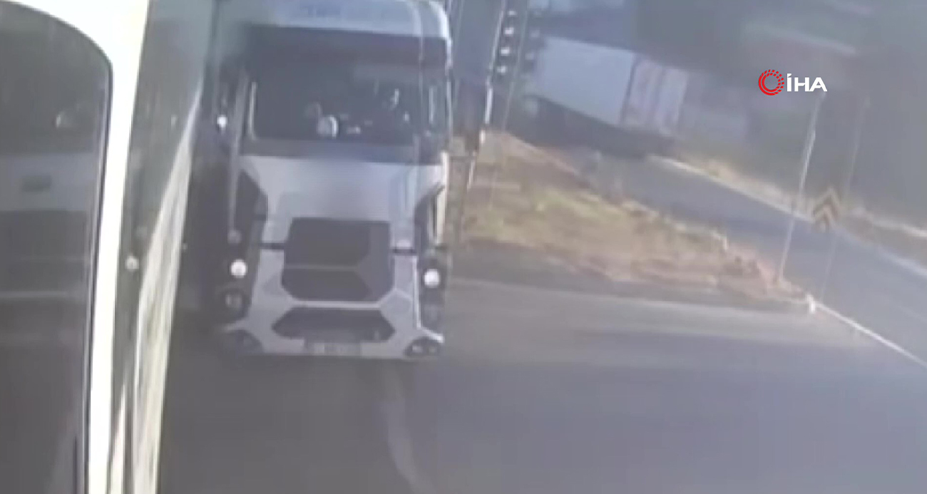 Freni patlayan tırın otobüse çarpma anı kamerada