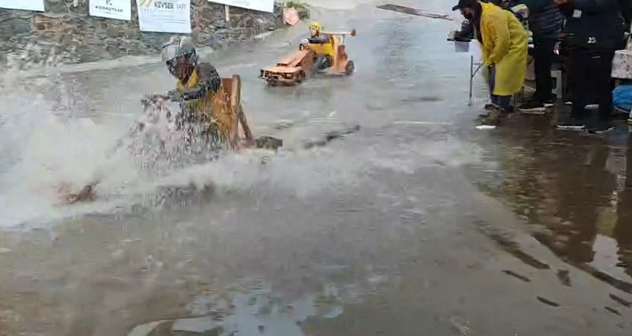 Geleneksel tahta araba yarışlarına yağmur da engel olamadı