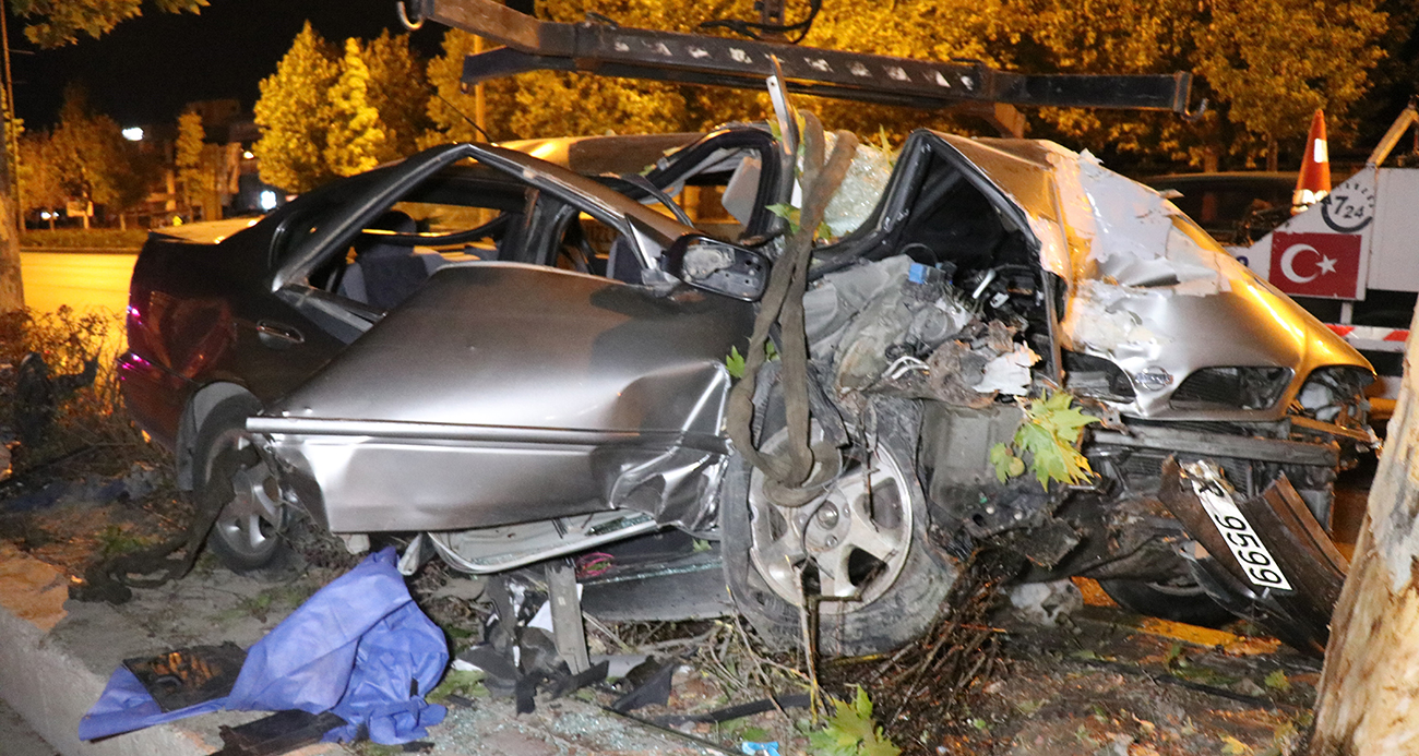Ağaca ok gibi saplanan otomobilde 2 kişi öldü, sürücü ağır yaralandı