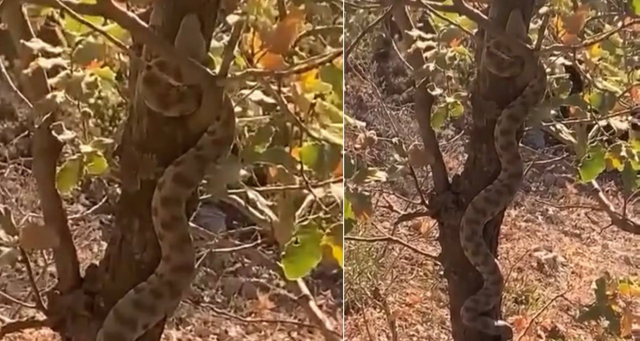 Mardin'de engerek yılanı ağaca tırmanırken görüntülendi