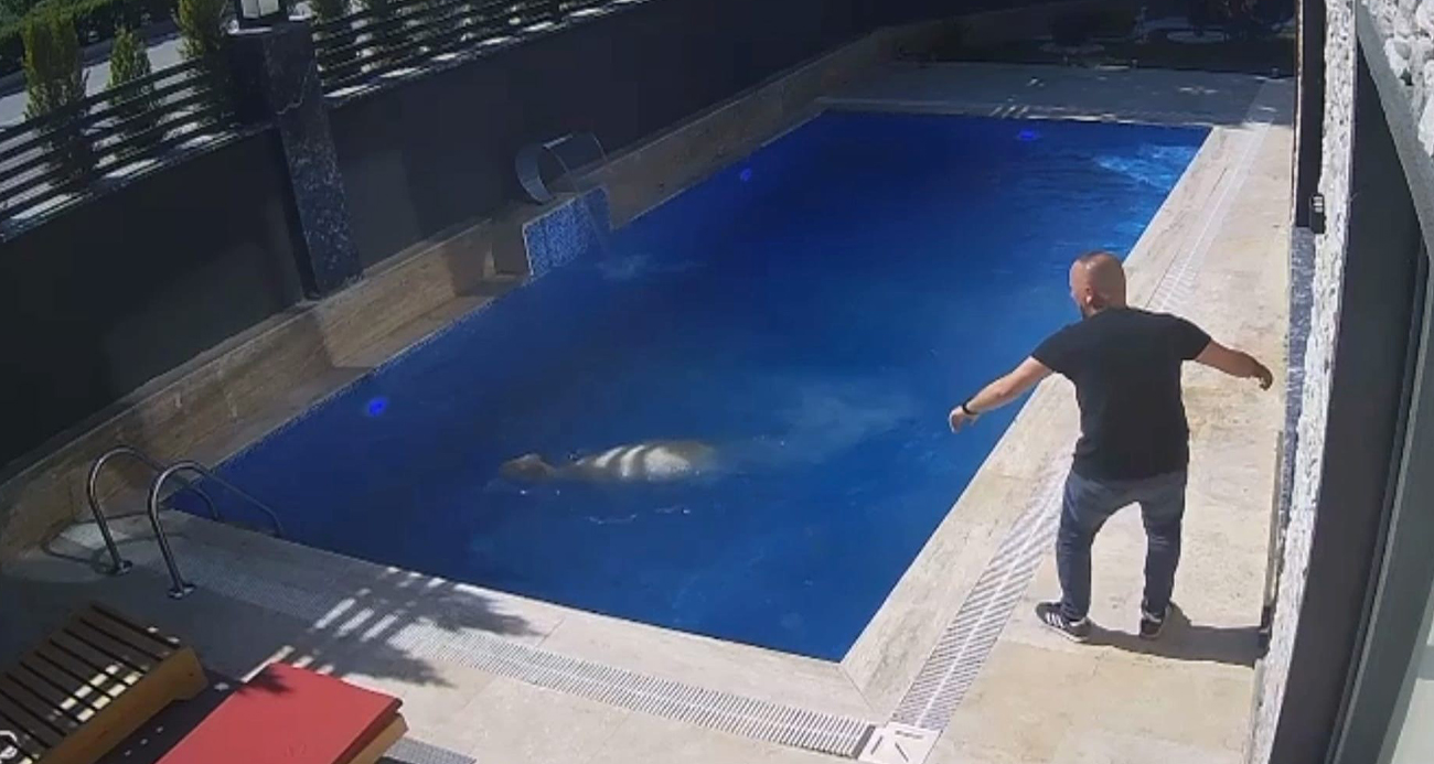 Bursa'nın İnegöl ilçesinde firar eden kurbanlık koç, havuza atladı. O anlar güvenlik kamerasına yansıdı.