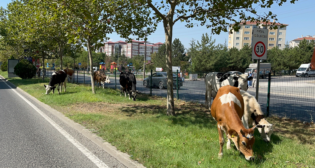 2025-08-18 22:52:33 Çiftlikten firar eden inek sürüsü şehir merkezine indi Tekirdağ’ın Çorlu ilçesinde çiftlikten kaçan inekler, şehir merkezinde vatandaşların şaşkın bakışları arasında refüjde yatıp dinlenerek otladı. Zaman zaman trafiği tehlikeye atan inekler, trafik polisinin sahibine ulaşmasının ardından çiftliğe götürüldü.