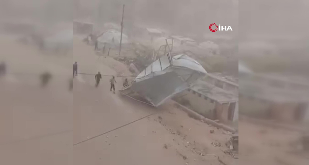 Gazze Şeridi’ni vuran kum fırtınası, yerinden edilen Filistinlilerin kaldığı çadırları yerinden söktü.