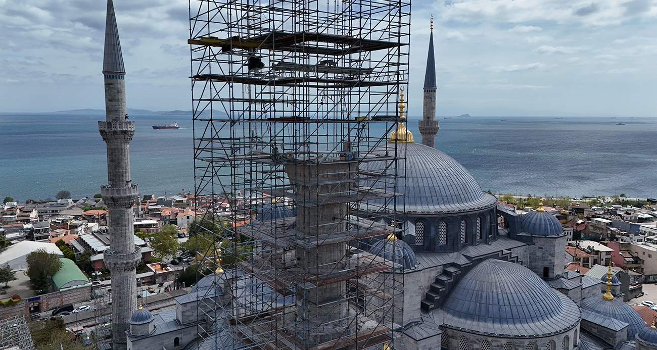 Sultanahmet Camii’nin ömrüne ömür katacak olan minare restorasyonu sürüyor