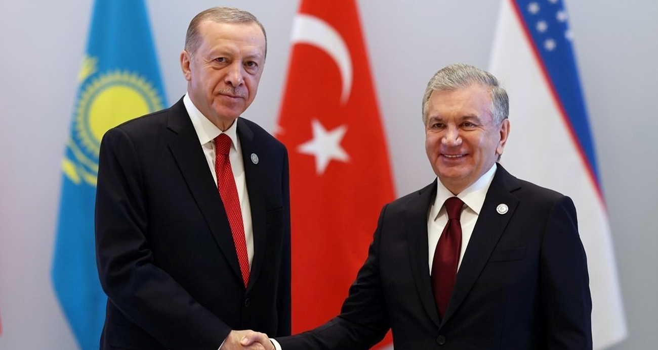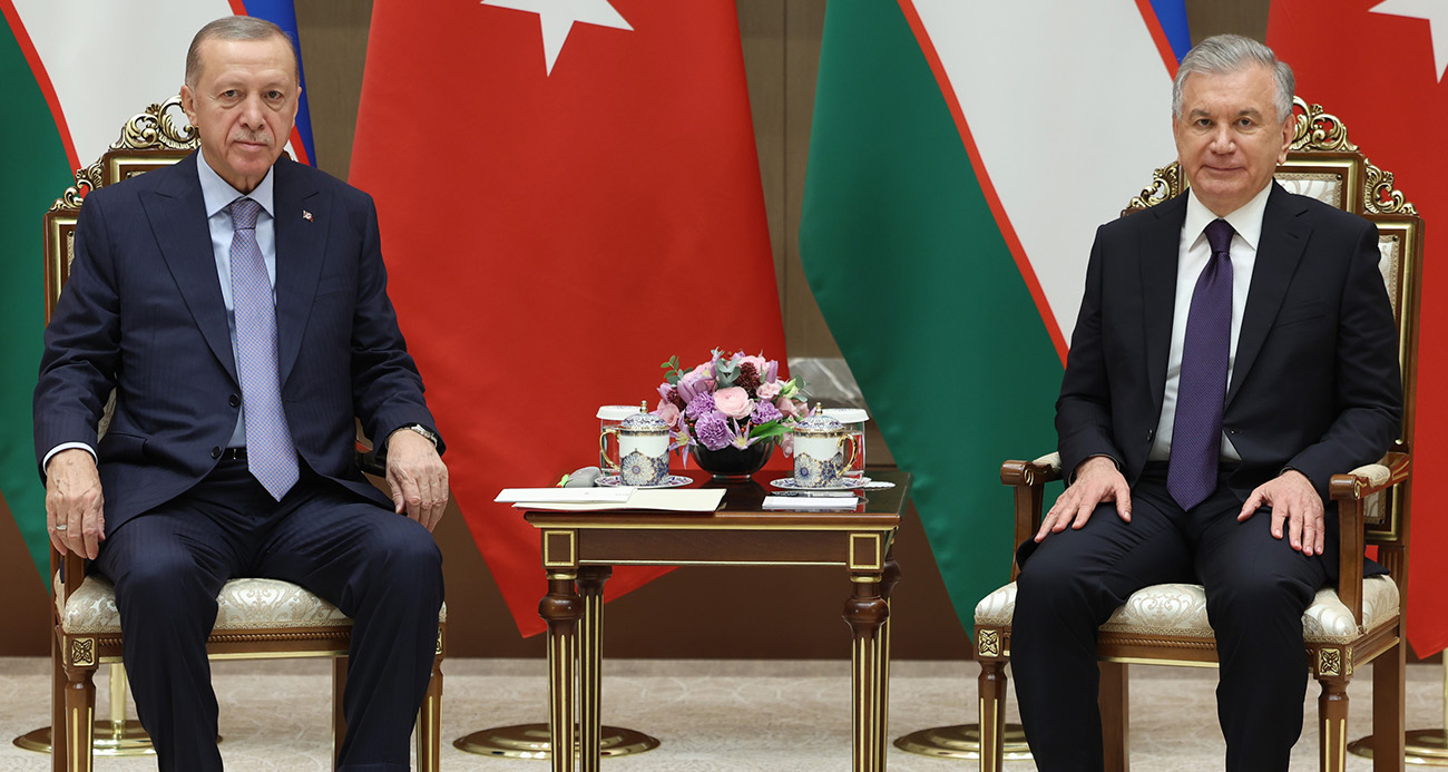 2023-11-08 17:12:50 Cumhurbaşkanı Erdoğan, Özbekistanlı mevkidaşı Mirziyoyev ile görüştü Cumhurbaşkanı Recep Tayyip Erdoğan, Taşkent'te Özbekistan Cumhurbaşkanı Şevket Mirziyoyev ile bir araya geldi.