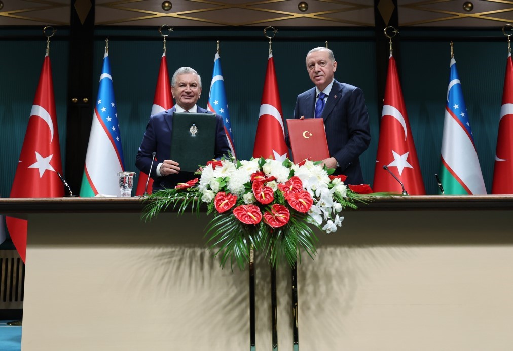 2024-06-06 21:34:42 Türkiye ve Özbekistan arasında 18 anlaşma Cumhurbaşkanı Recep Tayyip Erdoğan ve Özbekistan Cumhurbaşkanı Şevket Mirziyoyev’in huzurunda iki ülke arasında farklı alanlarda iş birliklerini içeren 18 anlaşma imzalandı.