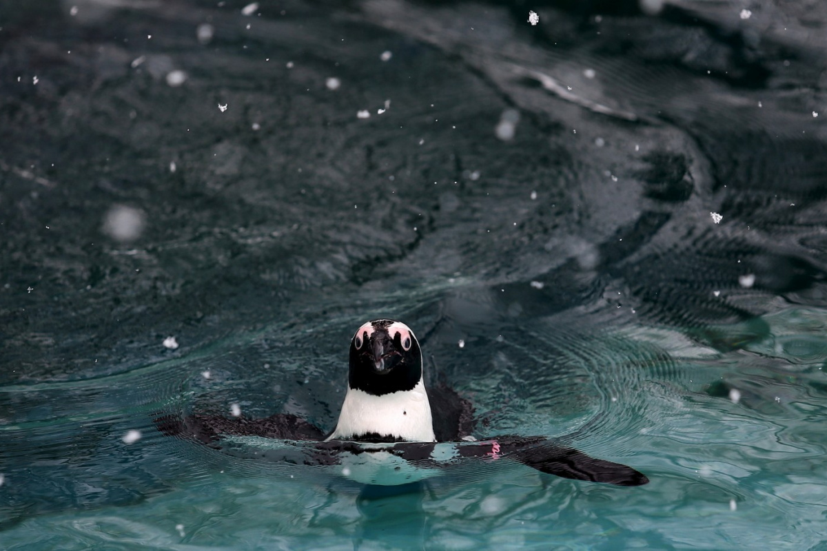 Bursa Hayvanat Bahçesi’nde soğuğu seven hayvanlar mart ayında yağan karın keyfini çıkarıyor. Kar yağışına aldırış etmeden görevliler tarafından beslenen penguenler, havuzlarında kar yağışının mutluluğunu yaşıyor.
