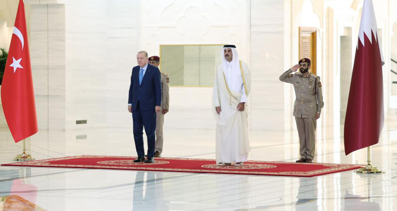 Cumhurbaşkanı Recep Tayyip Erdoğan, Katar'ın başkenti Doha'da Katar Emiri Şeyh Tamim bin Hamad Al Thani tarafından resmi törenle karşılandı.