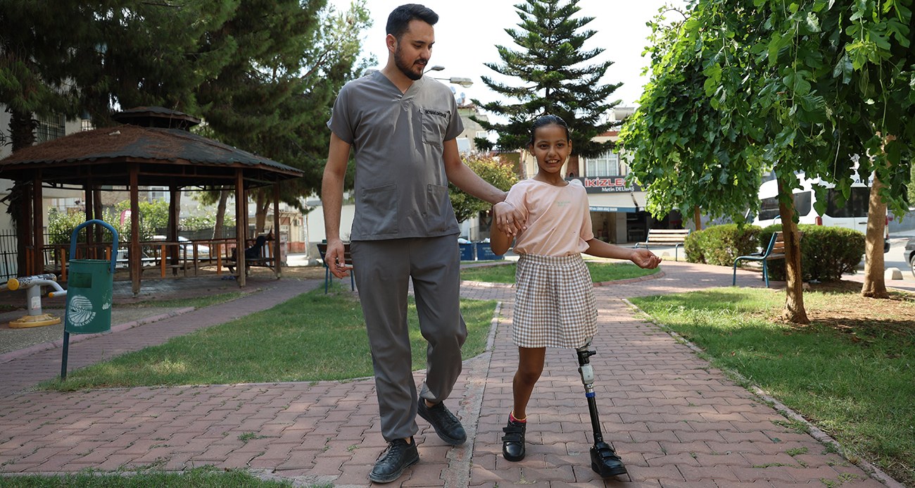 Adana'da Büyükşehir Belediyesi'ne ait yolcu otobüsünün çarpması sonucu 4 sene önce sol bacağını kaybeden 10 yaşındaki Rukiye Emine Kaplan'a protez bacak takıldı. Rukiye Emine, ilk adımlarını parka giderek attı.