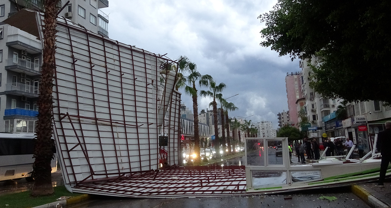 Antalya'da aniden bastıran yağış ve fırtına nedeniyle bir apartmanın çatısı uçtu. Araç trafiğinin en yoğun olduğu saatte şiddetli rüzgara dayanamayan tonlarca ağırlığındaki çatının altında şans eseri herhangi bir araç veya vatandaşın kalmadığı öğrenildi.