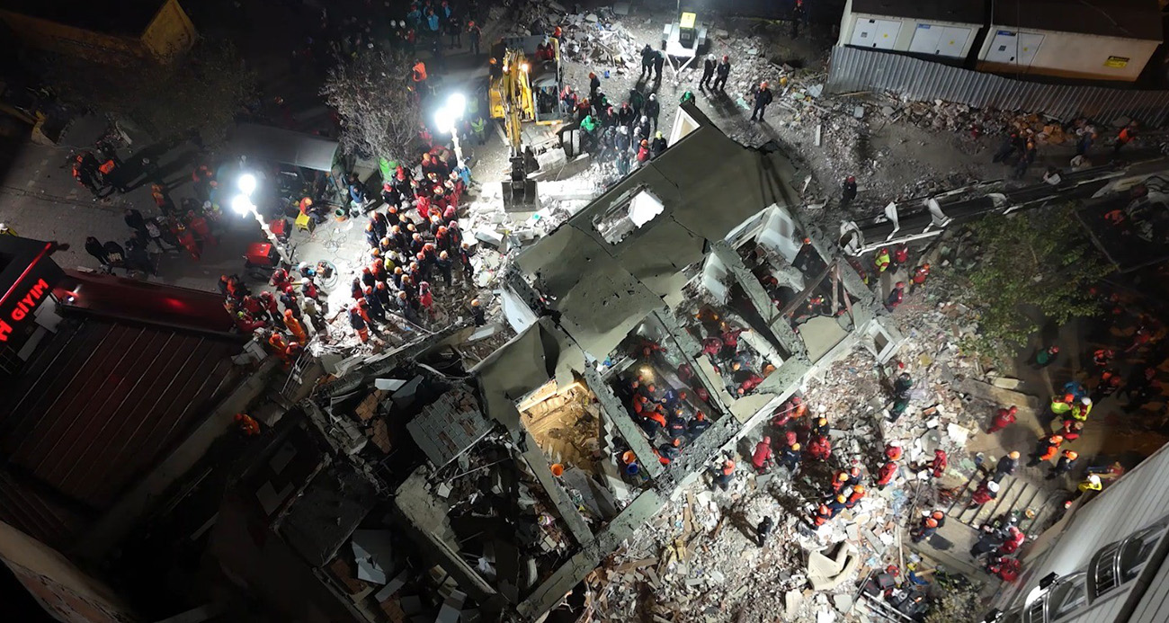 Kocaeli'nin Gebze ilçesinde çöken ve 2 çocuğun cansız bedenine ulaşılan binada, arama-kurtarma çalışmaları 14. saatine girdi. Ekipler, enkaz altındaki anne ve babaya ulaşmak için çalışmalarını sürdürürken yapılan çalışmalar havadan dronla görüntülendi.
