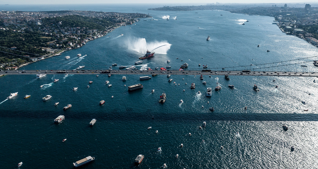 15 Temmuz Demokrasi ve Milli Birlik Günü nedeniyle İstanbul Boğazı'ndan tekne korteji yapıldı. Hain darbe girişiminde şehit olan 253 vatandaşın anısına 253 tekne de kortejde yer aldı. Türk bayraklarıyla boğazı selamlayan 253 tekne ve bot, havadan görüntülendi.