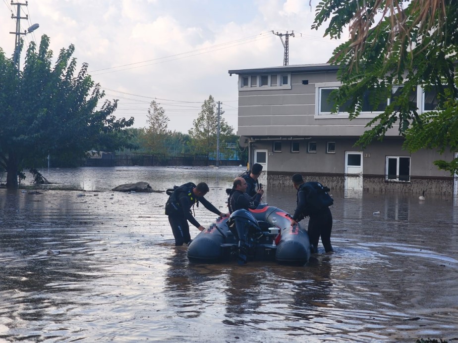Sağanak yağışla evlerinde mahsur kalan vatandaşlar botla kurtarıldı